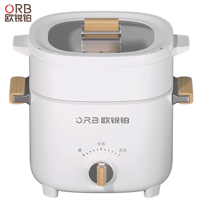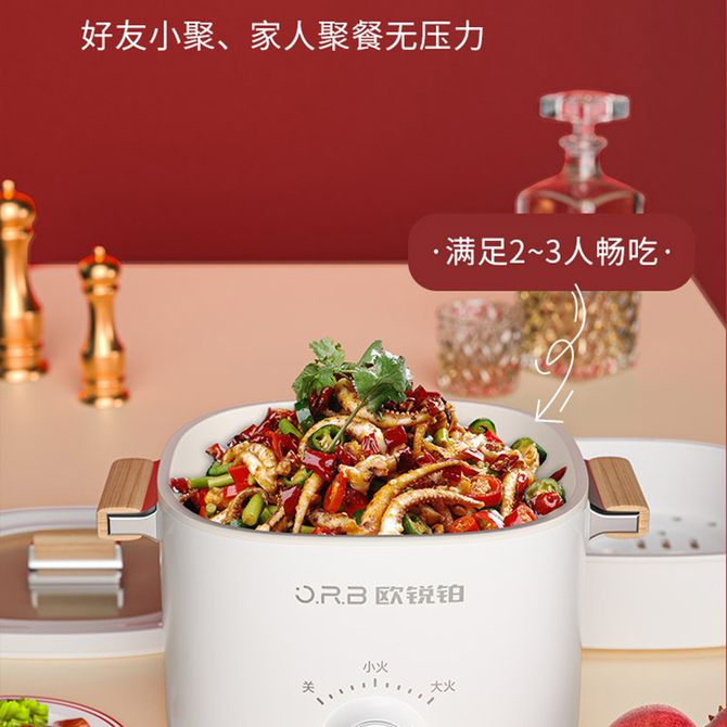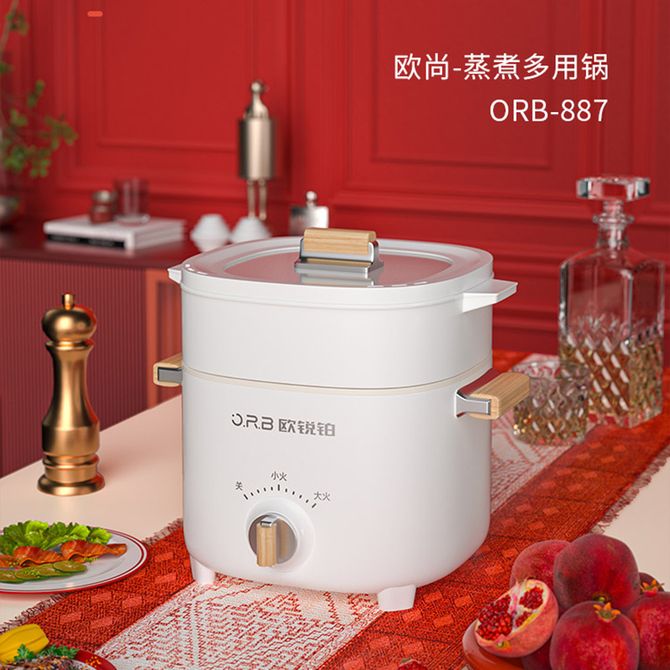 欧锐铂/ORB 2.5L电火锅料理锅电蒸锅电炖锅多功能锅蒸煮锅 煮面煮粥煲汤厨房电器炖煮锅电煮锅涮锅蒸蛋器蒸包子蒸馒头蒸饺蒸海鲜蒸玉米煎烤机涮肉锅多用途锅电热锅ORB-887白色