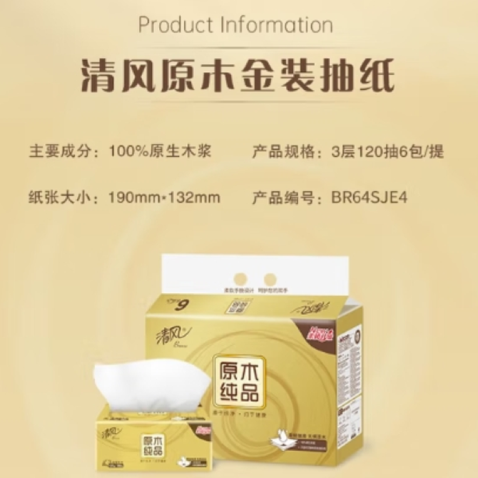 清风 抽纸金装原木纯品120抽6连包 6包/提,新旧随机发货 兑换价格 1100 里程 会员卡别 终身白金卡 白金卡 金卡 银卡 普通卡 儿童卡 服务 由 念家生活馆 发货并提供售后 包装数量: 1提 购买数量: 件 库存件 配送地址: 立即购买 加入购物车 成功添加到购物车 关闭 购物车共有 种商品 总金额为: 组合销售 产品介绍 产品规格 售后服务 产品咨询 发现好货 维达卷纸 卫生纸实惠装厕纸家用厕所纸巾手纸整箱批有芯大卷家庭装 1200-2300 里程 维达 Vinda 卷纸 140g/卷*10卷 蓝色经典3层卫生纸 1300 里程 心相印抽纸 茶语丝享系列 量贩家庭装 3层*100抽*4包(茶香 压花) 1100 里程 心相印 经典系列 二层面巾纸 180抽*6包*1提 1100 里程 维达Vinda 超韧系列抽纸(3层*130抽*6包) 原生木浆卫生餐巾纸婴儿面巾纸 6包优惠装 1100 里程