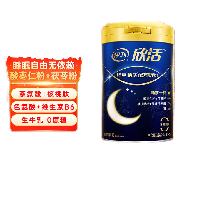 伊利欣活悠享膳底400g 睡眠奶粉 老人 0蔗糖 送礼 色氨酸 酸枣仁粉