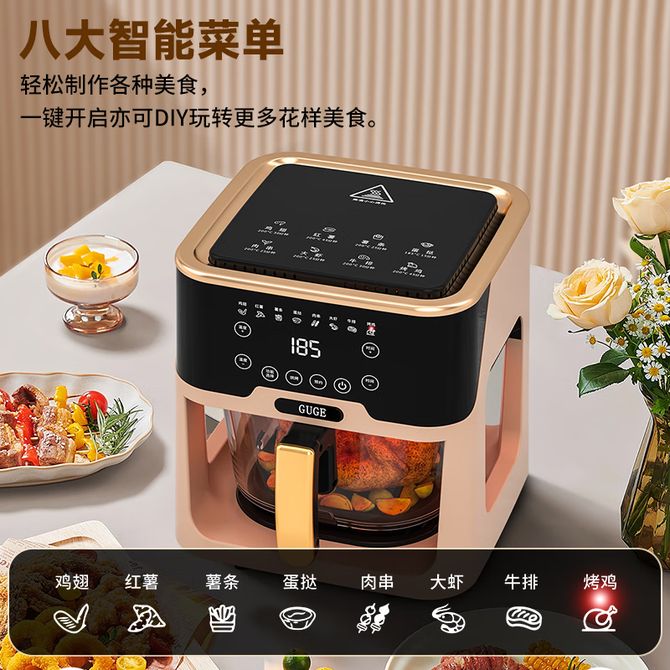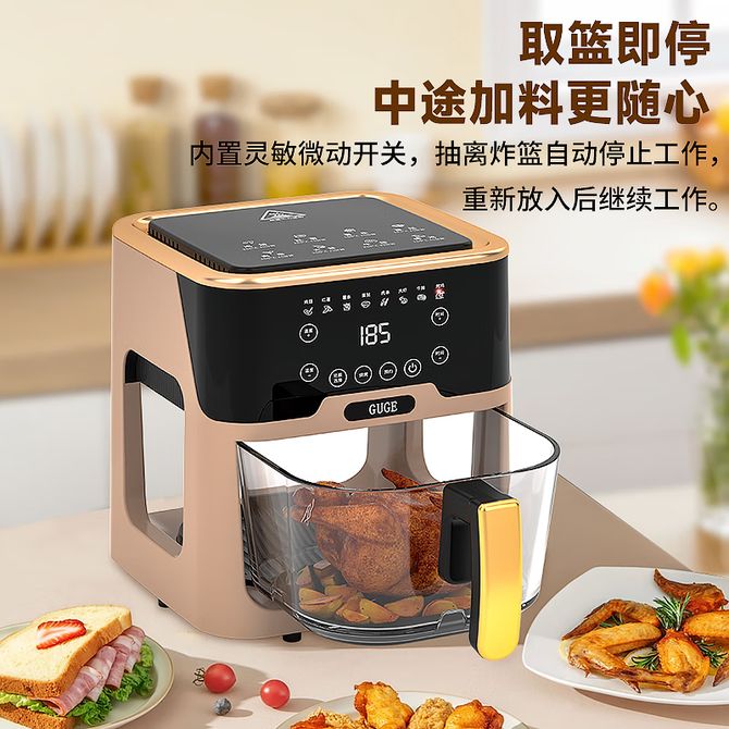 谷格/GUGE 可视化空气炸锅家用智能语音大容量透明全自动无油多功能不粘空气炸锅 GC665 奶咖色 可视化空气炸锅家用智能语音大容量透明全自动无油多功能不粘空气炸锅 GC665 奶咖色 兑换价格 21600 里程 会员卡别 终身白金卡 白金卡 金卡 银卡 普通卡 儿童卡 服务 由 海礼网电器专卖店 发货并提供售后 颜色: 咖啡色 购买数量: 件 库存件 配送地址: 立即购买 加入购物车 成功添加到购物车 关闭 购物车共有 种商品 总金额为: 组合销售 产品介绍 产品规格 售后服务 产品咨询 发现好货 苏泊尔(SUPOR)空气炸锅 家用多功能4.2L大容量 烤箱薯条机 无油烟电炸锅 大功率 无油低脂煎炸锅KJ42D811 6500 里程 苏泊尔(SUPOR)空气炸锅家用3L大容量电炸锅 蒸汽嫩炸多功能无油烟煎炸薯条机烤箱KD30DQ815 21700 里程 美的/Midea 空气炸锅 家用5升可视炸锅金属内腔体微蒸汽多功能智能双旋控温电炸锅 KZE5089 10900 里程 美的/Midea 空气炸锅 可视 不用翻面 金属内腔 蒸汽嫩炸 三档烘烤风力 5L KZC5089 10700 里程 小熊/Bear 空气炸锅 4D漩烤不用翻面 全自动 5L实用大容量 可视 蒸汽嫩炸 控油脱脂 炸烤箱一体机 9100 里程