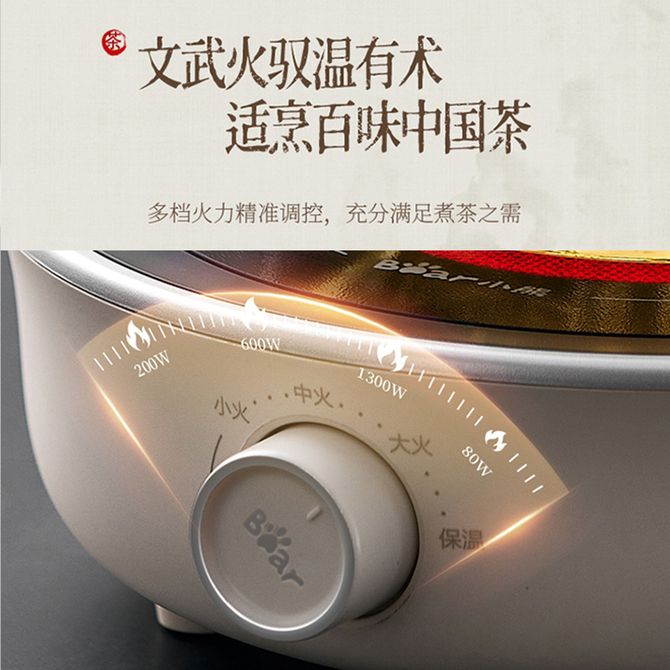 小熊/Bear 电陶炉 迷你煮茶器煮茶壶 养生壶花茶壶 黑茶煮茶炉一炉多用不挑器具 【配壶具】 多档火力可调 百搭不挑壶具 高硬耐磨炉面 兑换价格 10400 里程 会员卡别 终身白金卡 白金卡 金卡 银卡 普通卡 儿童卡 服务 由 广西自贸区京通桂达科技发展有限公司 发货并提供售后 颜色: 其他 购买数量: 件 库存件 配送地址: 立即购买 加入购物车 成功添加到购物车 关闭 购物车共有 种商品 总金额为: 组合销售 产品介绍 产品规格 售后服务 产品咨询 发现好货 美的/Midea 电磁炉2100W大功率家用触控按键耐用面板八档火力定时功能防水电磁灶火锅炉C21-RT21E01 2100W大功率 6500 里程 美的(Midea) 电磁炉 家用大火力电池炉电磁灶 RT21E0105 7000 里程 美的(Midea)电磁炉商用2200W大功率配锅套装家用电磁灶触控MC-CL22Q1-405J 7800 里程 美的/Midea 电磁炉 家用大功率 4D防水面板 2200W大火力炒菜火锅不粘炒锅一体小型电磁灶 5700 里程 美的(Midea)电磁炉家用2200W大火力火锅炉汉森面板智能定时旋风防堵风机C22-RT22E01 7000 里程