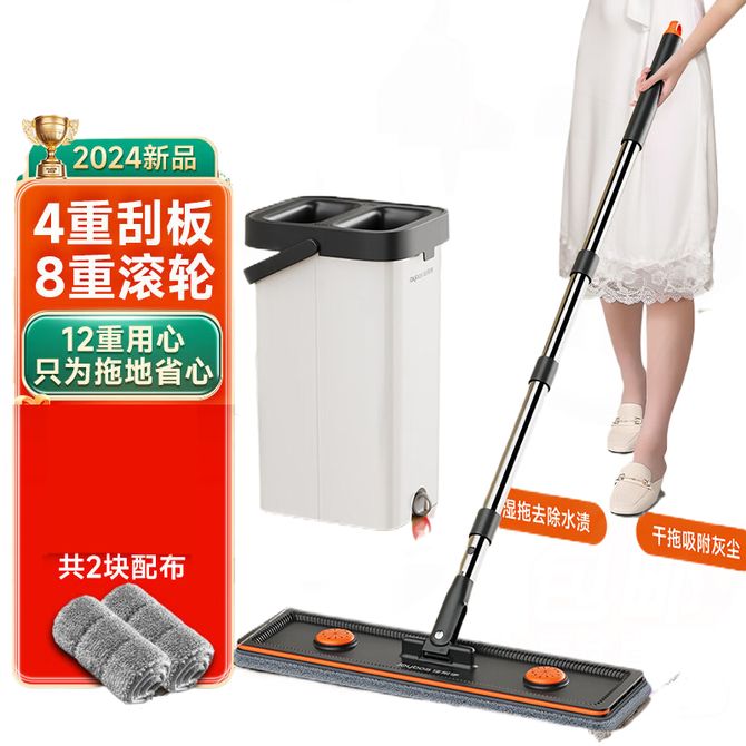 佳帮手 拖把家用一拖净免手洗2024新款带桶平板拖布刮刮乐 【新升级】加厚桶+加长杆+共2布