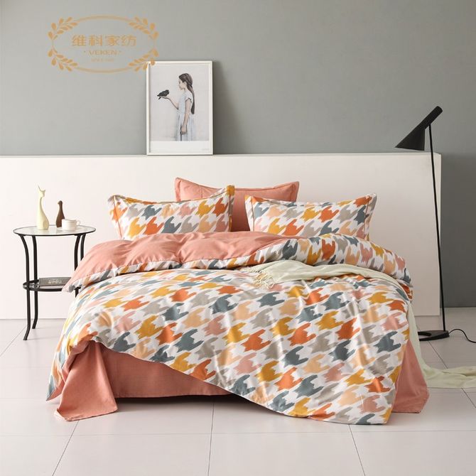 维科家纺VEKEN 炫彩亲肤四件套 双人床上用品被罩床单枕套 时尚亲肤水洗棉套件 200cm*230cm四件套