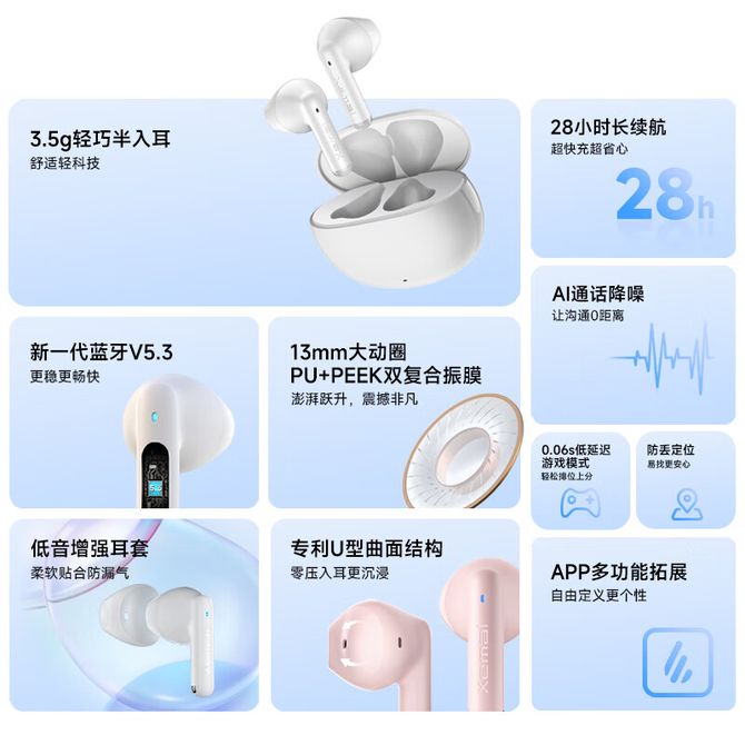 组合销售 产品介绍 产品规格 售后服务 产品咨询 发现好货 雷摄 运动蓝牙耳机无线跑步超长续航待机半入耳降噪高端健身2024新款 BT-03半入耳 1400 里程 飞利浦/Philips 蓝牙耳机耳夹式无线开放挂耳式骨传导概念不入耳运动跑步通话降噪适用于华强北蓝牙耳机TAT3469 6200 里程 魔声 (MONSTER)Open Ear AC600骨传导概念蓝牙耳机开放式无线夹耳式不入耳式耳夹式运动通话降噪手机通用 3700 里程 飞利浦(PHILIPS)真无线蓝牙耳机跑步运动耳机防水防汗TAT1168 8700 里程 漫步者EDIFIER 真无线蓝牙耳机Zero Air月白 通话降噪半入耳低延游戏手机音乐耳塞 5200 里程