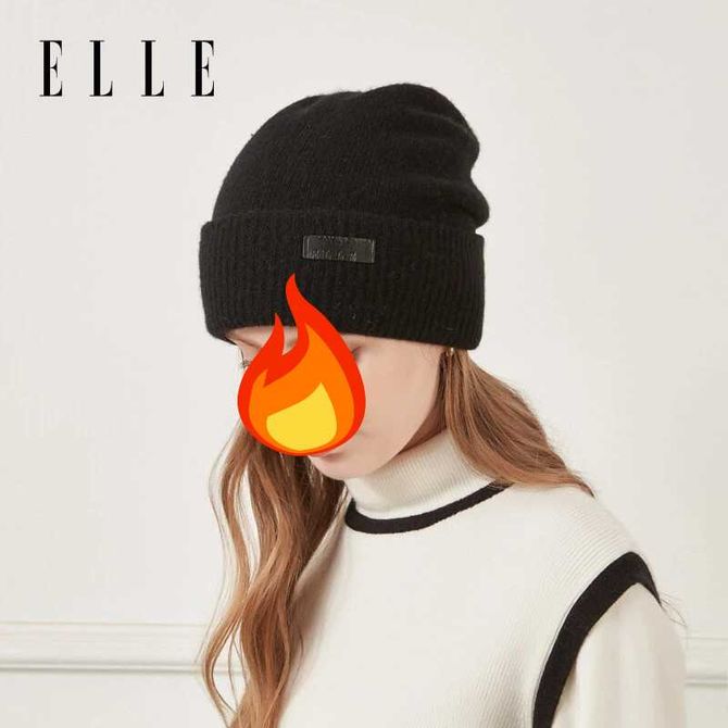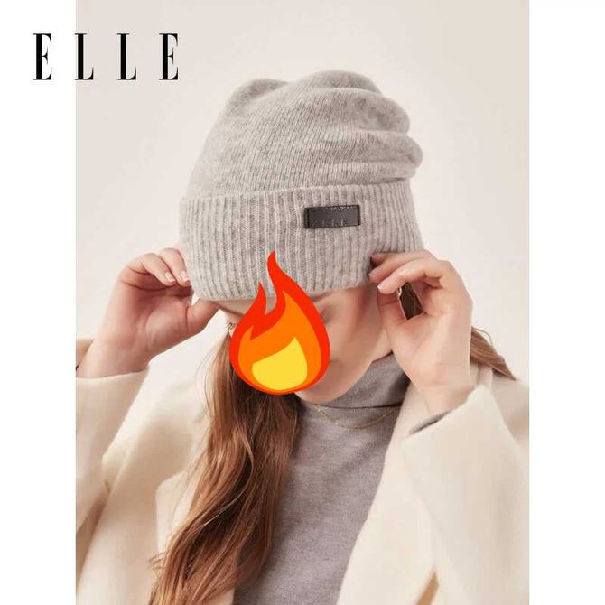 Elle 100%纯羊毛针织帽 女士秋冬季户外保暖堆堆帽 冷帽 毛线帽子 (单独帽子)