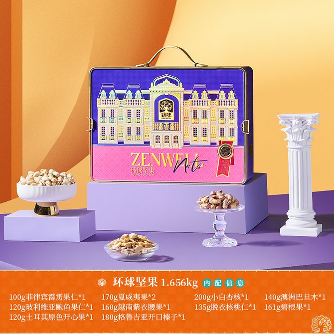 臻味 环球坚果礼盒(精准铁盒)1.656kg 鲍鱼果仁开心果夏威夷果多种坚果炒货休闲零食大礼包 佳节送礼 环球坚果礼盒1.656kg 兑换价格 9500 里程 会员卡别 终身白金卡 白金卡 金卡 银卡 普通卡 儿童卡 服务 由 广西桂人礼互联网科技有限公司 发货并提供售后 规格: 礼盒 购买数量: 件 库存件 配送地址: 立即购买 加入购物车 成功添加到购物车 关闭 购物车共有 种商品 总金额为: 组合销售 产品介绍 产品规格 售后服务 产品咨询 发现好货 西域美农 新疆薄皮核桃500g/袋 新疆特产原味 薄皮核桃 1300 里程 西域美农 烘焙腰果200g 坚果特产 休闲零食 带皮腰果仁 1600 里程 味滋源 紫皮腰果2袋装 每袋100g 1100 里程 沃隆每日坚果(A)175g盒装 1700 里程 百草味 坚果炒货夏威夷果100g*1袋 1100 里程