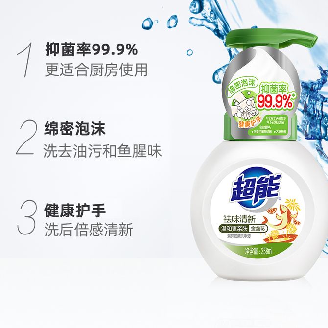 超能 泡沫抑菌洗手液(祛味清新)258ml* 2瓶 厨房专用 泡沫绵密,祛味清新,温和亲肤 兑换价格 1700 里程 会员卡别 终身白金卡 白金卡 金卡 银卡 普通卡 儿童卡 服务 由 京狮文化生活馆 发货并提供售后 清洁剂容量: 其他容量 净含量: 其他容量 购买数量: 件 库存件 配送地址: 立即购买 加入购物车 成功添加到购物车 关闭 购物车共有 种商品 总金额为: 组合销售 产品介绍 产品规格 售后服务 产品咨询 发现好货 舒肤佳抑菌洗手液 纯白清香420g+柠檬420g(新老包装随机发货) 3400 里程 滴露/Dettol 泡沫抑菌洗手液青柠香型250ml 1300 里程 蓝月亮 卫诺沁香花园香氛洁厕液 500g×6瓶 4100 里程 滴露/Dettol 消毒液消毒水1.8L衣物除菌液家居宠物环境地板杀菌除螨 非84酒精 3110246 4100 里程 立白 生姜洗洁精 2.5kg 除腥祛味 1200 里程