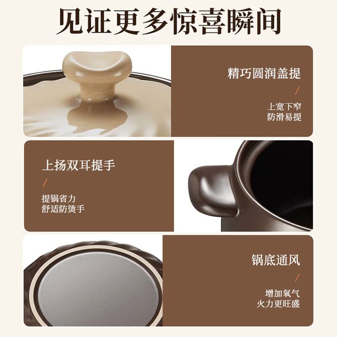 组合销售 产品介绍 产品规格 售后服务 产品咨询 发现好货 荣事达/Royalstar 煲锅 砂锅煲汤熬药煮粥焖饭砂锅陶瓷炖汤沙锅家用养生汤锅瓦煲瓦罐4.6L 3900 里程 爱仕达(ASD) 煲锅 砂锅煲汤炖锅2.5L陶瓷煲仔饭砂锅燃气灶明火专用 4800 里程 炊大皇/Cookerking 砂锅5L耐高温陶瓷煲多用炖锅汤锅家用养生煲陶瓷锅明火煤燃气灶专用TCXW5002 4400 里程 炊大皇/Cookerking 砂锅 6L耐高温陶瓷煲多用炖锅汤锅 家用养生煲陶瓷锅 明火煤燃气灶专用TCXW6003 5300 里程 苏泊尔(SUPOR) 砂锅煲汤锅炖锅4.5L养生煲耐高温不开裂陶瓷煲EB45MAT01 6000 里程