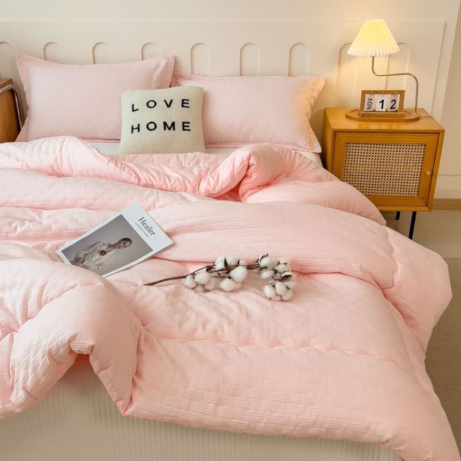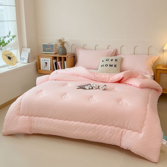 逸轩/yixuan 华夫格单人春秋被 华夫格-樱花粉 150*200cm【重约3斤】