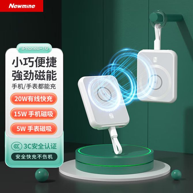 纽曼(Newmine) AL51 超薄磁吸充电宝5000毫安MagSafe无线快充PD20W移动电源小巧便携