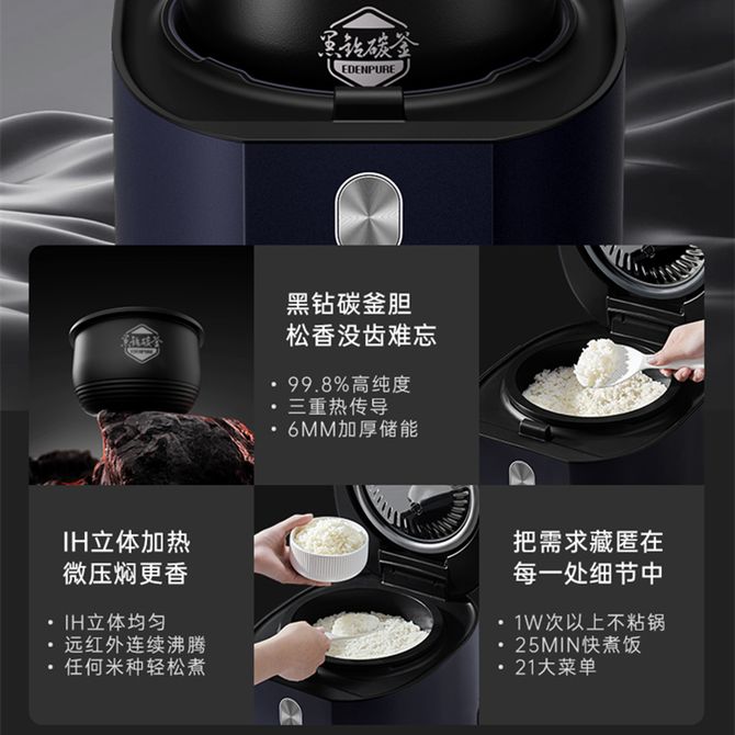 宜盾普 4L电饭煲IH加热微电脑电饭锅 预约定时多功能煮饭煮粥煲汤炖煮锅厨房家用电器电炖锅电锅电热锅EDC-FB1蓝色 4L容量;IH立体加热;黑钻碳釜;微气泡注氧翻滚技术;微压立体加热;不粘易清洗;智能菜单;24小时预约 兑换价格 139800 里程 会员卡别 终身白金卡 白金卡 金卡 银卡 普通卡 儿童卡 商品已下架 1. 请联系卖家咨询 2. 逛逛万象盛世电器专营店选择其他商品 组合销售 产品介绍 产品规格 售后服务 产品咨询 发现好货 苏泊尔(SUPOR) 电饭煲电饭锅4L大容量 不粘内胆4-6个人前置大屏面板24小时预约上蒸下煮多功能家用智能SF40FC0063 7700 里程 美菱/MELNG 电饭煲3L触控式预约定时MF-LC3005 4400 里程 美的(Midea) 电饭煲 家用3L智能预约多功能电饭锅小型1-4人煮饭锅智能 白色 MB-FB30M161 7800 里程 康佳/Konka 迷你电饭煲小电饭锅2L容量智能温控12小时预约煮饭煮粥锅 4800 里程 美的/Midea 电饭煲电饭锅3-4个人家用4L大容量聚能釜金属机身大火力米饭锅【升级焖香阀】RE417 8700 里程