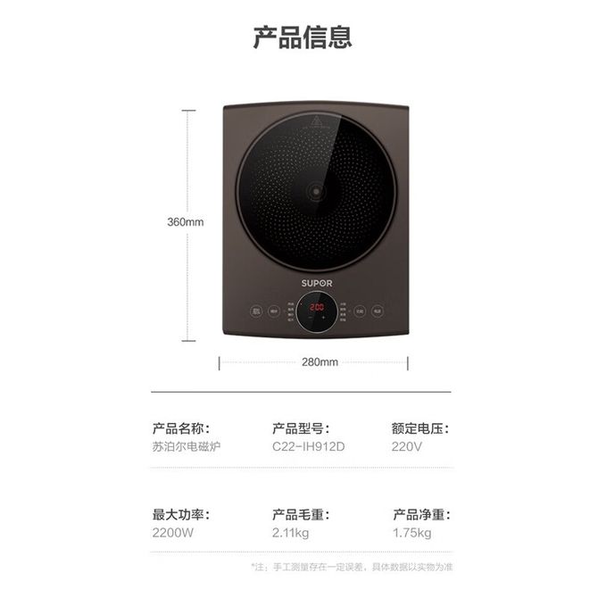 苏泊尔(SUPOR) 电磁炉煮饭2200W大功率家用触控按键耐用面板定时功能电磁灶火锅炉 C22-IH912D 苏泊尔(SUPOR)电磁炉C22-IH912D 兑换价格 9100 里程 会员卡别 终身白金卡 白金卡 金卡 银卡 普通卡 儿童卡 服务 由 优米酷家电生活馆 发货并提供售后 颜色: 其他 购买数量: 件 库存件 配送地址: 立即购买 加入购物车 成功添加到购物车 关闭 购物车共有 种商品 总金额为: