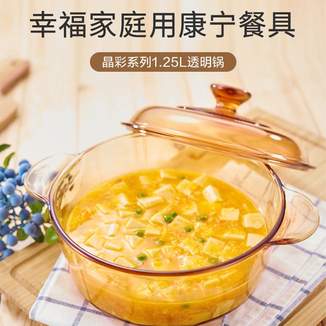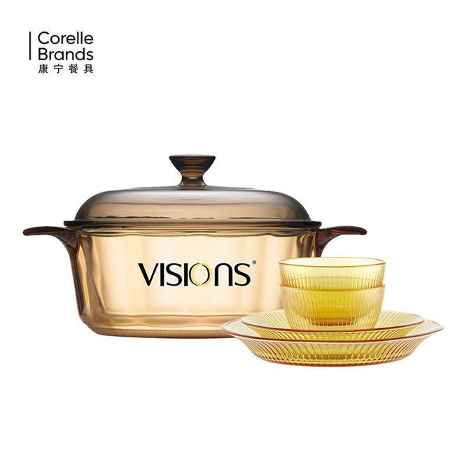 VISIONS 正品餐具晶彩生活5件组 晶彩锅1.25L+晶尊2小碗+1小盘+1大盘 晶彩生活家庭厨房5件套