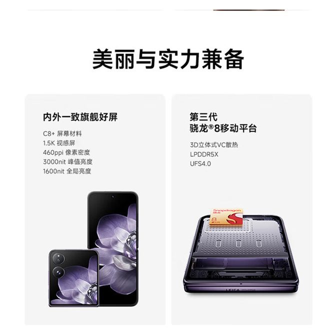 小米(MI) MIX Flip 小折叠屏 4.01英寸多功能超大外屏 第三代骁龙8 5G拍照AI手机 12GB+512GB 白色