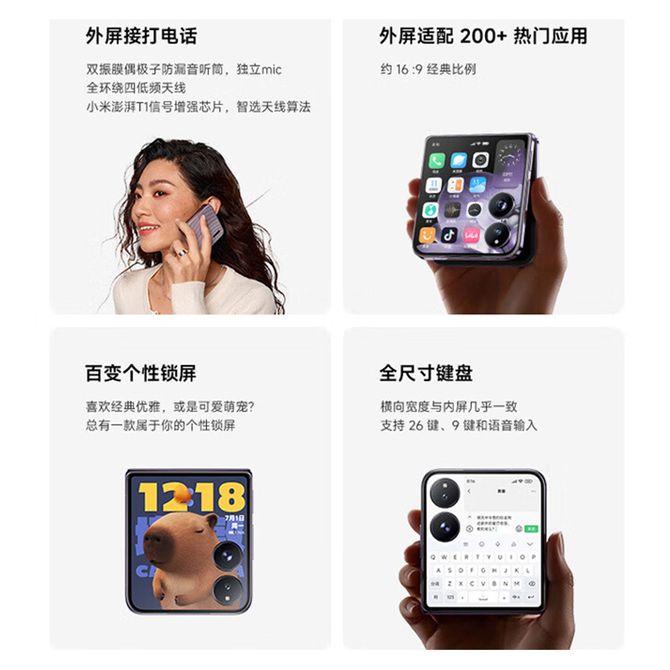 4.01”全尺寸大外屏 全等深微曲屏小米龙晶玻璃极 视觉边框 外屏接打电话 外屏适配 200+热门应用
