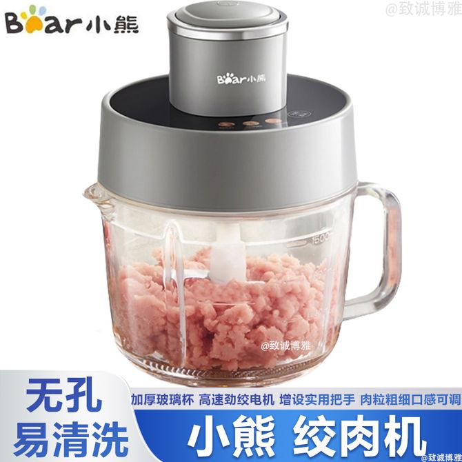 小熊/Bear 绞肉机家用 双刀绞馅机 饺子肉馅蒜蓉馅碎肉机 智能菜单电动料理搅拌可调粗细搅肉机 肉粒粗细口感可调 无孔易清洗 加厚玻璃杯 高速劲绞电机 增设实用把手 兑换价格 7400 里程 会员卡别 终身白金卡 白金卡 金卡 银卡 普通卡 儿童卡 服务 由 北京致诚博雅贸易有限公司 发货并提供售后 颜色: 其他 购买数量: 件 库存件 配送地址: 立即购买 加入购物车 成功添加到购物车 关闭 购物车共有 种商品 总金额为: