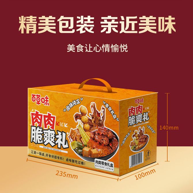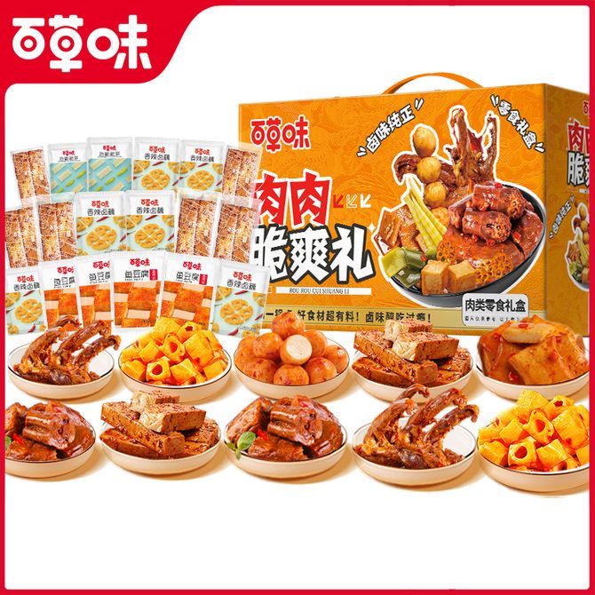 百草味 肉肉脆爽礼564g 鸭锁骨鸭脖q弹鱼丸等多种辣卤美味肉类零食礼盒 居家办公室零食礼包 佳节送礼礼盒
