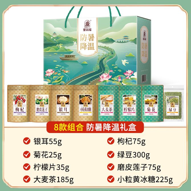 塞翁福 防暑降温礼盒975g 枸杞莲子银耳菊花柠檬片干货组合 营养丰富泡水煲汤甜品干货食材礼盒装 佳节送礼 配置:防暑降温礼盒975g;内配:枸杞75g、磨皮莲子75g、银耳55g、菊花25g、柠檬片35g、大麦茶185g、绿豆300g、小粒冰糖225g 兑换价格 3700 里程 会员卡别 终身白金卡 白金卡 金卡 银卡 普通卡 儿童卡 服务 由 广西桂人礼互联网科技有限公司 发货并提供售后 规格: 礼盒 购买数量: 件 库存件 配送地址: 立即购买 加入购物车 成功添加到购物车 关闭 购物车共有 种商品 总金额为: