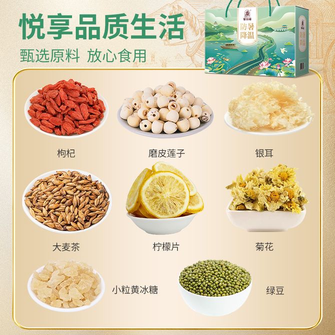 塞翁福 防暑降温礼盒975g 枸杞莲子银耳菊花柠檬片干货组合 营养丰富泡水煲汤甜品干货食材礼盒装 佳节送礼 配置:防暑降温礼盒975g;内配:枸杞75g、磨皮莲子75g、银耳55g、菊花25g、柠檬片35g、大麦茶185g、绿豆300g、小粒冰糖225g 兑换价格 3700 里程 会员卡别 终身白金卡 白金卡 金卡 银卡 普通卡 儿童卡 服务 由 广西桂人礼互联网科技有限公司 发货并提供售后 规格: 礼盒 购买数量: 件 库存件 配送地址: 立即购买 加入购物车 成功添加到购物车 关闭 购物车共有 种商品 总金额为: 组合销售 产品介绍 产品规格 售后服务 产品咨询 发现好货 岚海渔歌(LANHAIYUGE) 金钩海米虾米干货非特级无盐新鲜开洋虾皮海虾米干虾仁干250g 1900 里程 十月稻田 红枸杞子250g半斤特级干枸杞泡水煲汤煮粥食材 1100 里程 岚海渔歌 金钩海米250g虾米干货 1900 里程 十月稻田 新疆灰枣500g一等灰枣新疆特产小红枣零食煲汤煮粥干货 1100 里程 十月稻田 东北黑木耳 150g肉厚无根干木耳黑龙江东宁特产 火锅炒菜凉拌 6970093763042 1100 里程