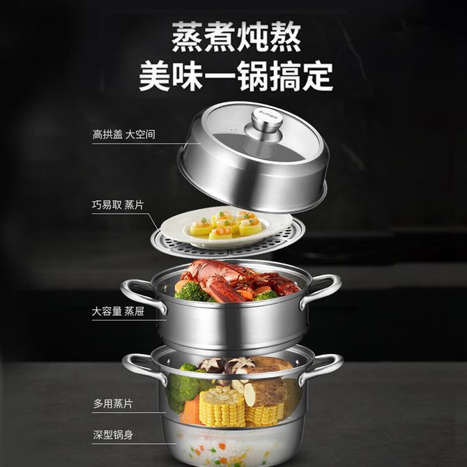 组合销售 产品介绍 产品规格 售后服务 产品咨询 发现好货 苏泊尔(SUPOR) 蒸锅不锈钢28cm复底双层SZ28B5蒸鱼蒸馒头蒸馍大蒸锅蒸笼 8700 里程 德铂(Debo)汤锅不锈钢单层蒸锅蒸笼电磁炉两用锅艾琳诺26cm DEP-DS146 2100 里程 拜格(Bayco) 蒸锅三层家用蒸馒头煲汤加厚汤锅BG1548【28cm】 3000 里程 炊大皇(COOKER KING) 304不锈钢三层蒸锅家用复合底汤锅蒸馒头包子可视可立高拱盖30cm 6100 里程 德铂(Debo) 科洛姆双层蒸锅不锈钢汤锅20cm不挑炉灶DEP-913 2600 里程