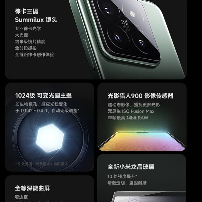 徕卡三摄Summilux 镜头 全新小米龙晶玻璃 全等深微曲屏
