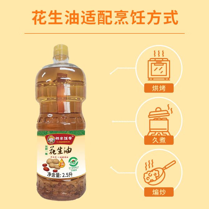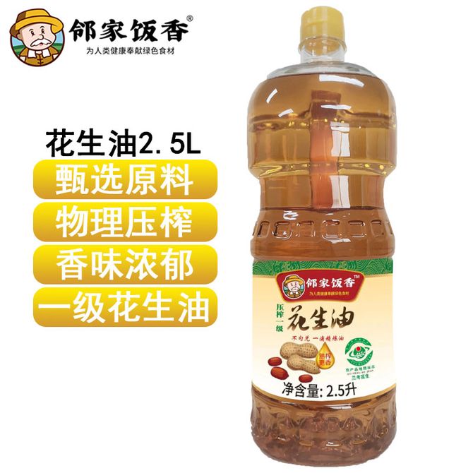 邻家饭香 压榨一级花生油2.5L 优选原料物理压榨香味浓郁食用花生油 兰考花生压榨一级花生油 炒菜烹饪食用油