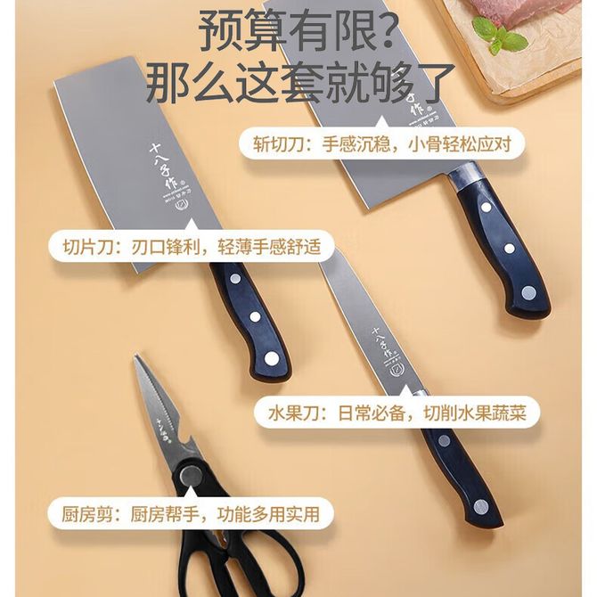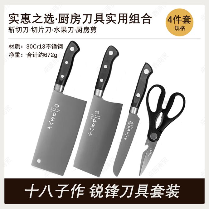 十八子作 正品锐锋刀具四件套 切片刀斩切刀水果刀厨房剪 厨房刀具套装组合SC-047 不锈钢刀体,防滑舒适手柄,厨房刀具四件组合 兑换价格 3900 里程 会员卡别 终身白金卡 白金卡 金卡 银卡 普通卡 儿童卡 服务 由 卓鹏商贸生活馆 发货并提供售后 颜色: 其他 购买数量: 件 库存件 配送地址: 立即购买 加入购物车 成功添加到购物车 关闭 购物车共有 种商品 总金额为: