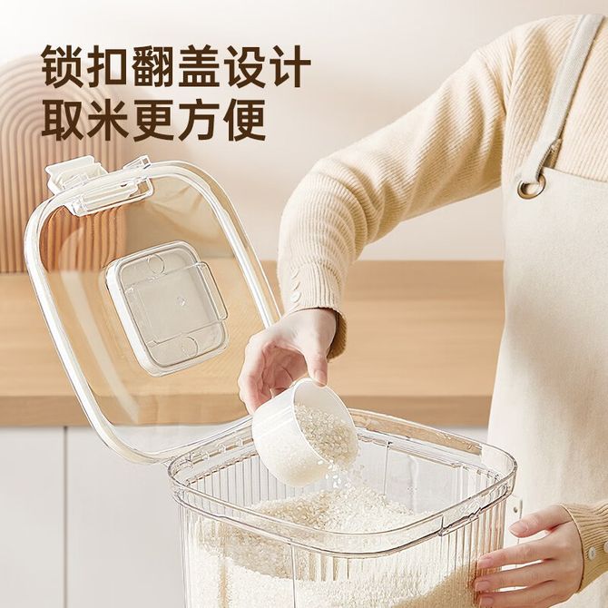 炊大皇(COOKER KING) 米桶 卡扣米桶家用防虫防潮密封桶塑料储米箱大容量 正方形款 20斤【4-6口之家】