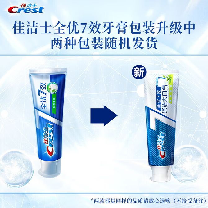 佳洁士 全优7效茶香清新牙膏 180g*2支 固齿护龈 除口腔异味 包装随机