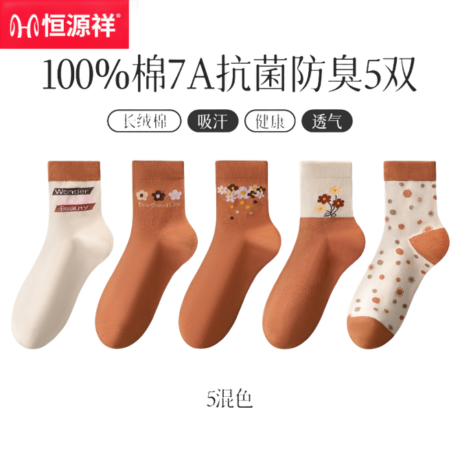 恒源祥 【5双装】新款女士袜子纯棉加厚袜子中筒花卉女袜休闲可爱学生袜妈妈袜【颜色随机】 舒爽透气-吸汗防臭-健康抑菌 兑换价格 1900 里程 会员卡别 终身白金卡 白金卡 金卡 银卡 普通卡 儿童卡 服务 由 奥墩麦(河北)科技有限公司 发货并提供售后 袜子版型: 中筒 购买数量: 件 库存件 配送地址: 立即购买 加入购物车 成功添加到购物车 关闭 购物车共有 种商品 总金额为: 组合销售 产品介绍 产品规格 售后服务 产品咨询 发现好货 南极人纯棉防臭吸汗中筒男袜-黑色(5双装)N506X203010315 1500 里程 浪莎 纯棉吸汗透气男士棉袜6双装 2200 里程 恒源祥 【5双装】男士商务薄款全棉抗菌防臭袜子 1900 里程 恒源祥 【10双装】男士袜子夏天纯色袜子吸汗网眼防臭抗菌舒适透气百搭男袜商务休闲棉袜子【混色】 2700 里程 南极人 男士素色抗菌中筒袜 黑色10双装 2100 里程