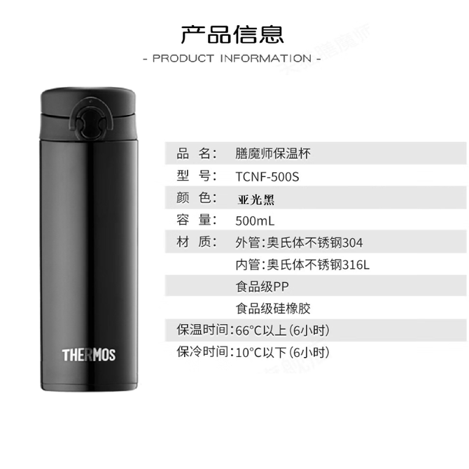 膳魔师(THERMOS) 保温杯 黑色 500ml TCNF-500S 时尚贴心设计,瓶身烤漆 运动保温杯,双层真空结构 兑换价格 11600 里程 会员卡别 终身白金卡 白金卡 金卡 银卡 普通卡 儿童卡 服务 由 和易科技 发货并提供售后 颜色: 亚光黑 购买数量: 件 库存件 配送地址: 立即购买 加入购物车 成功添加到购物车 关闭 购物车共有 种商品 总金额为: 组合销售 产品介绍 产品规格 售后服务 产品咨询 发现好货 爱奇屋aichiw思悦保温杯AI-D97 1500 里程 希乐(cille) 领先保温杯XB-22172女生316水杯儿童上学专用大容量杯子冬季男款学生水壶500ml 2400 里程 爱奇屋 保温杯随行口袋杯 高颜值清新小巧水杯子280ml AI-D158 1100 里程 德铂(Debo) 480ml托马斯弹跳盖304不锈钢保温杯DEP-719 1500 里程 德铂Debo保温杯304不锈钢内胆双层茶杯白色DEP-719 1400 里程