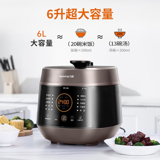 九阳/Joyoung 电高压锅 Y-60C91 智能家用电压力锅压力煲铜匠大火一锅双胆大屏开盖营养煮预约定时6L 智能家用电压力锅压力煲铜匠大火一锅双胆大屏开盖营养煮预约定时6L 兑换价格 16500 里程 会员卡别 终身白金卡 白金卡 金卡 银卡 普通卡 儿童卡 服务 由 纳华优选 发货并提供售后 颜色: 玫瑰金 购买数量: 件 库存件 配送地址: 立即购买 加入购物车 成功添加到购物车 关闭 购物车共有 种商品 总金额为: 组合销售 产品介绍 产品规格 售后服务 产品咨询 发现好货 苏泊尔(SUPOR)电压力锅 6升大容量 智能触控 球釜双胆 开盖收汁 一键排压 SY-60YC8001Q 高压锅 16900 里程 苏泊尔(SUPOR) 5L电压力锅家用电高压锅双胆高压电饭锅煮饭智能预约 SY-50YC8186 11300 里程 美的/Midea 电压力锅 高压锅家用电压力煲智能预约电饭煲大容量多功能定时预约电饭煲3-8人单胆旋钮款4L MY-E4809 8700 里程 美的/Midea 电压力锅 5L 一锅双胆 多功能家用易清洁双胆高压快煮上蒸下煮 高压锅 YL50X5-201 12700 里程 美的/Midea 电压力锅 上蒸下煮家用智能双胆电高压锅电饭锅多功能高压电饭煲电蒸锅5升 MY-YL50M3 10900 里程