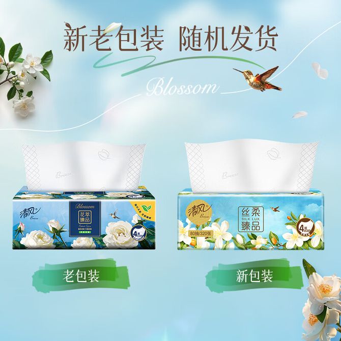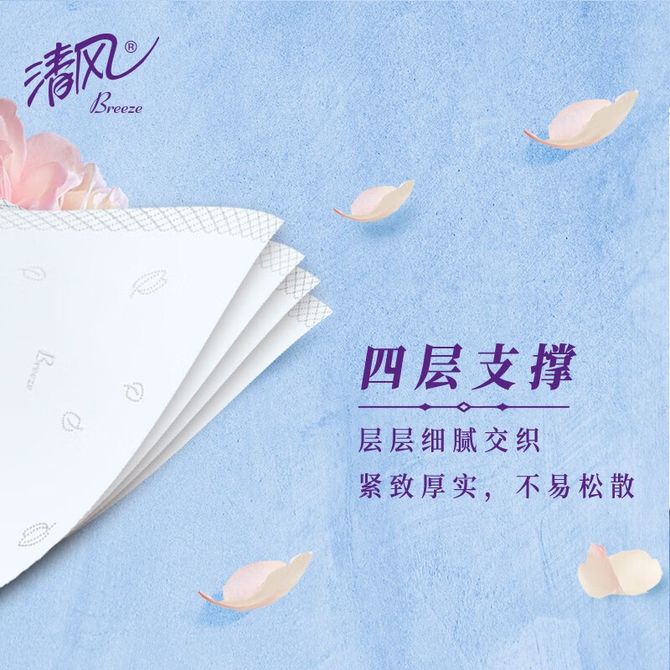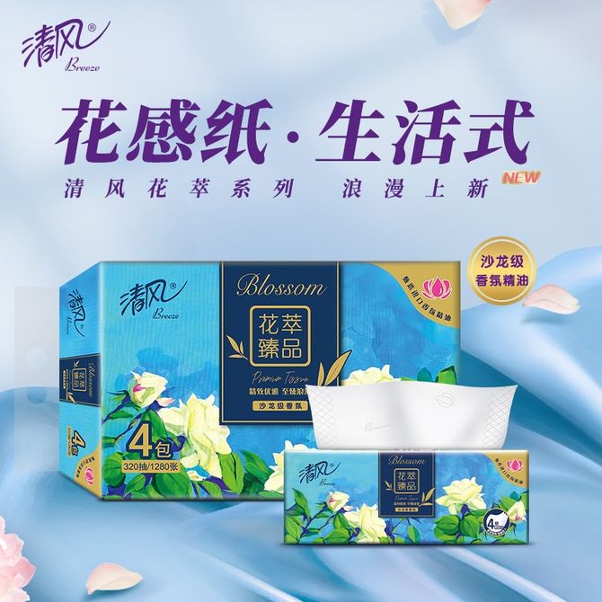 清风 花萃臻品香氛抽纸4层纸巾一提4包 4层80抽/包 190mm*132mm