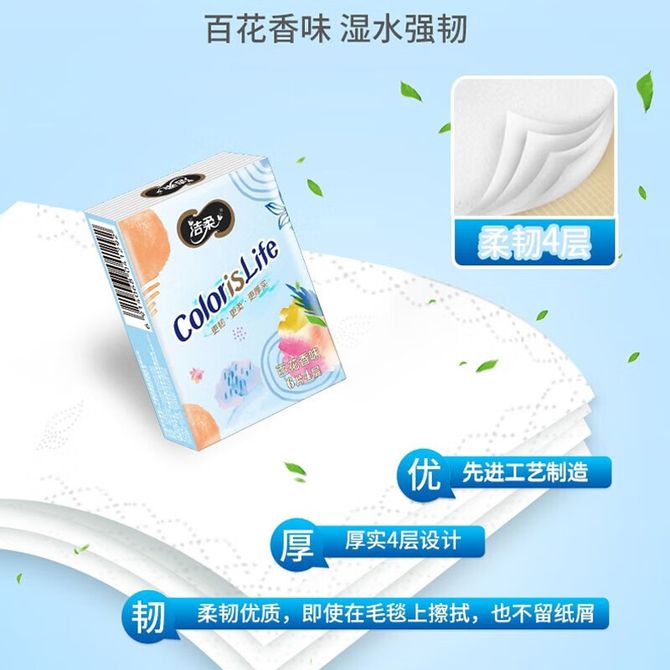 洁柔 缤纷百花香手帕纸 4层6片/包 30包/条*3条 186mm*182mm 4层6片/包 30包/条*3条 兑换价格 1300 里程 会员卡别 终身白金卡 白金卡 金卡 银卡 普通卡 儿童卡 服务 由 峰海个护馆 发货并提供售后 包装数量: 3提 购买数量: 件 库存件 配送地址: 立即购买 加入购物车 成功添加到购物车 关闭 购物车共有 种商品 总金额为: 组合销售 产品介绍 产品规格 售后服务 产品咨询 发现好货 维达卷纸 卫生纸实惠装厕纸家用厕所纸巾手纸整箱批有芯大卷家庭装 1200-2300 里程 维达 Vinda 卷纸 140g/卷*10卷 蓝色经典3层卫生纸 1300 里程 心相印抽纸 茶语丝享系列 量贩家庭装 3层*100抽*4包(茶香 压花) 1100 里程 心相印 经典系列 二层面巾纸 180抽*6包*1提 1100 里程 维达Vinda 超韧系列抽纸(3层*130抽*6包) 原生木浆卫生餐巾纸婴儿面巾纸 6包优惠装 1100 里程