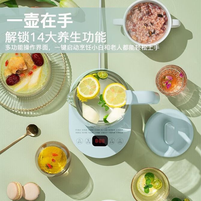 组合销售 产品介绍 产品规格 售后服务 产品咨询 发现好货 九阳/Joyoung 养生壶1.5L茶具电茶壶煮茶壶花茶壶玻璃煮茶器煎药壶中药锅药膳电水壶烧水壶 3900 里程 九阳/Joyoung 养生壶迷你玻璃花茶壶煮茶器 12大功能11档温度 电水壶热水壶烧水壶 1.5L DGD1506BQ 3900 里程 美的/Midea 养生壶 1.5L家用多功能小型全自动办公室烧水壶加厚玻璃煮茶热水壶 MK-YS15P201 4200 里程 美的/Midea 养生壶 1.5L家用养生壶全自动玻璃烧水壶24h预约烧水壶12小时防干烧保护智能恒温 MK-YS15P202 3700 里程 美的/Midea 养生壶 1.5L全自动电热水壶 24h预约12小时智能恒温 14大功能11档控温 花茶壶煮茶器MK-Y12Q 3500 里程