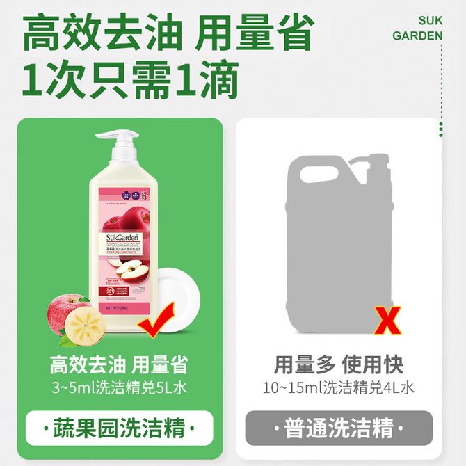 蔬果园/SukGarden 食品可用洗洁精大容量果蔬餐具清洗剂洗涤灵家用厨房洗碗液2.88kg 正品包邮 一般48小时内发出,节假日发货可能会有延迟,部分包装可能进行变更,品质不变,还请多多谅解! 兑换价格 1900 里程 会员卡别 终身白金卡 白金卡 金卡 银卡 普通卡 儿童卡 服务 由 银弓家居日用专营店 发货并提供售后 清洁剂容量: 其他容量 净含量: 其他容量 购买数量: 件 库存件 配送地址: 立即购买 加入购物车 成功添加到购物车 关闭 购物车共有 种商品 总金额为: 组合销售 产品介绍 产品规格 售后服务 产品咨询 发现好货 超能 西柚祛腥洗洁精1kg*2瓶 家用果蔬清洗剂 1200 里程 滴露/Dettol 滋润倍护洗手液500g*2两瓶装 1900 里程 滴露/Dettol 泡沫抑菌洗手液青柠香型250ml 1300 里程 蓝月亮 卫诺沁香花园香氛洁厕液 500g×6瓶 4100 里程 威露士 洗手液 倍护滋润250ml *2瓶 深入洁净有效抑菌温和滋润清洁双手 1100 里程