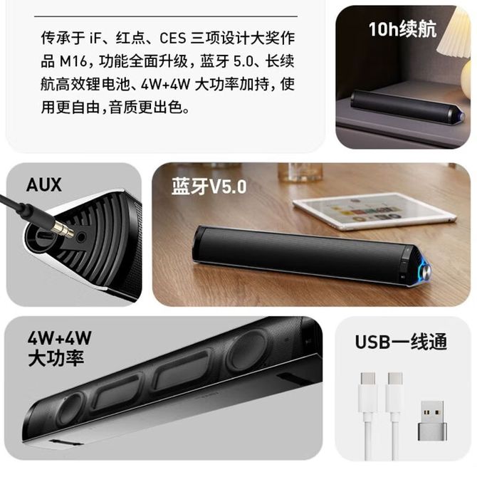 组合销售 产品介绍 产品规格 售后服务 产品咨询 发现好货 漫步者(EDIFIER) R12U台式电脑音响低音炮手机迷你笔记本小音箱USB 台式/笔记本音响 支持USB 时尚外观设计 4000 里程 漫步者(EDIFIER) R10U台式/笔记本电脑USB小音箱 迷你音响 多媒体桌面数码低音炮 3500 里程 漫步者(EDIFIER) R101V多媒体有源音箱2.1声道电脑音响 桌面重低音炮 6500 里程 纽曼(Newmine)N63收音机半导体唱戏机评书戏曲插卡音箱音响 2200 里程 小米 小爱同学音箱Play基础款 AIoT语音控制 蓝牙Mesh网关 音乐小说智能音箱智能音响 4800 里程