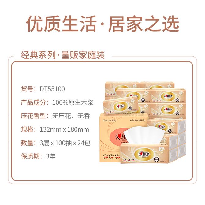 心相印 经典系列抽纸 100抽X24包 心相印 经典抽纸100抽X24包 兑换价格 1800 里程 会员卡别 终身白金卡 白金卡 金卡 银卡 普通卡 儿童卡 服务 由 恒安集团旗舰店 发货并提供售后 包装数量: 箱 购买数量: 件 库存件 配送地址: 立即购买 加入购物车 成功添加到购物车 关闭 购物车共有 种商品 总金额为:
