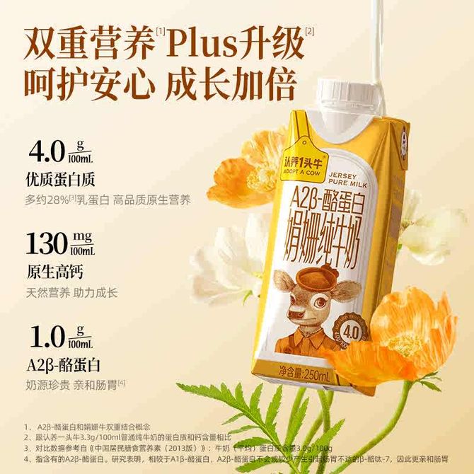认养一头牛 A2娟姗 4.0g蛋白 珍惜奶源 亲和肠道 250ml*10一提装 双重营养 兑换价格 3900 里程 会员卡别 终身白金卡 白金卡 金卡 银卡 普通卡 儿童卡 服务 由 禅卿专营店 发货并提供售后 规格: 盒装 购买数量: 件 库存件 配送地址: 立即购买 加入购物车 成功添加到购物车 关闭 购物车共有 种商品 总金额为: 组合销售 产品介绍 产品规格 售后服务 产品咨询 发现好货 蒙牛 特仑苏纯牛奶苗条装250ml×12盒 2900 里程 三元 经典小方白全脂纯牛奶250ml*24盒牛奶 整箱 3400 里程 伊利金典纯牛奶250ml*12盒整箱 2200 里程 伊利 金典纯牛奶整箱 250ml*12盒 3.6g乳蛋白 原生高钙 礼盒装 1800 里程 特仑苏 新日期纯牛奶250ml*12盒 3.6g乳蛋白 礼盒装 京东/顺丰发货 2400 里程