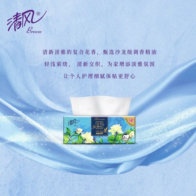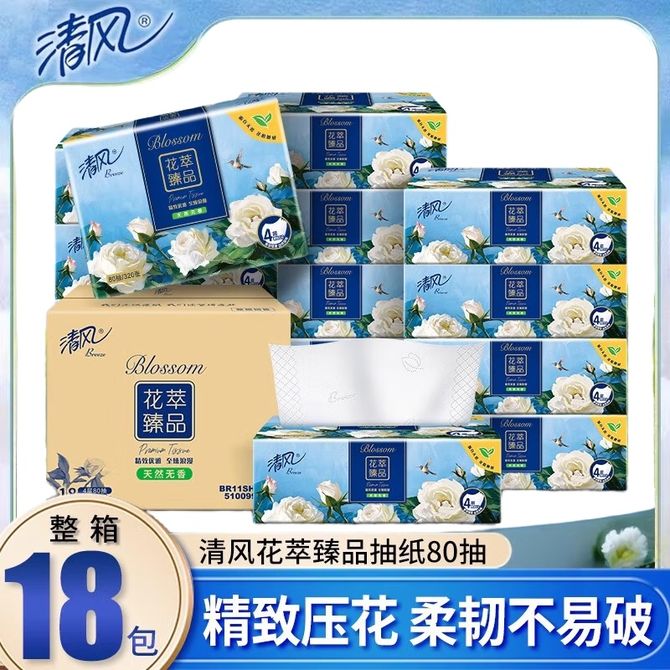 清风 抽纸 花萃臻品面巾纸家用卫生纸餐巾纸4层80抽18包整箱纸抽