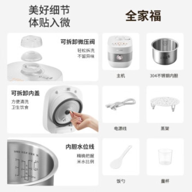 组合销售 产品介绍 产品规格 售后服务 产品咨询 发现好货 苏泊尔(SUPOR) 电饭煲电饭锅4L大容量 不粘内胆4-6个人前置大屏面板24小时预约上蒸下煮多功能家用智能SF40FC0063 8300 里程 奥克斯/AUX 电饭煲3L电饭锅 2-3人小型预约智能电饭煲VK-309F2 5100 里程 苏泊尔(SUPOR) 迷你电饭煲家用电饭锅2-3人3L小容量蓝钻不粘内胆快煮饭功能智能预约小型多功能SF30FC0187 6100 里程 美菱/MELNG 电饭煲3L触控式预约定时MF-LC3005 4400 里程 苏泊尔(SUPOR) 煮饭煮粥智能预约多功能一锅多用小型微压电饭锅30FC0187 7200 里程