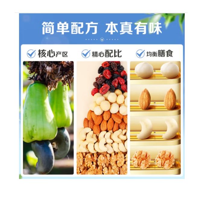 组合销售 产品介绍 产品规格 售后服务 产品咨询 发现好货 西域美农 新疆薄皮核桃500g/袋 新疆特产原味 薄皮核桃 1300 里程 西域美农 烘焙腰果200g 坚果特产 休闲零食 带皮腰果仁 1600 里程 味滋源 紫皮腰果2袋装 每袋100g 1100 里程 沃隆每日坚果(A)175g盒装 1700 里程 百草味 坚果炒货夏威夷果100g*1袋 1100 里程