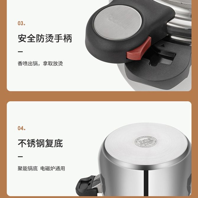 组合销售 产品介绍 产品规格 售后服务 产品咨询 发现好货 爱仕达/ASD 高压锅燃气明火防爆六保险5.3L铝合金22CM家用压力锅YL22S2WG 5500 里程 炊大皇(COOKER KING) 压力锅高压锅7重安全防爆8L适合4-8人燃气电磁炉通用 24cm 12200 里程 双喜 华康装铝压力锅 22CM/5.5L高压力密封圈防爆锅具明火专用高压锅LM06C22 5200 里程 双喜小康装铝压力锅20CMLM-06C 5000 里程 爱仕达(ASD) 高压锅304不锈钢六保险6.5L压力锅燃气电磁通用WG1824DN 8300 里程