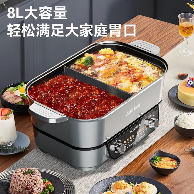 奥克斯 料理锅火锅专用多功能鸳电热锅家用鸯电煮锅分体式家用8L大容量涮肉分区控温大火力速沸 升级抗菌不粘-2200W速沸8L 奥克斯多功能双味料理锅 兑换价格 13000 里程 会员卡别 终身白金卡 白金卡 金卡 银卡 普通卡 儿童卡 服务 由 赛丹孚小家电专营店 发货并提供售后 颜色: 其他 购买数量: 件 库存件 配送地址: 立即购买 加入购物车 成功添加到购物车 关闭 购物车共有 种商品 总金额为: 组合销售 产品介绍 产品规格 售后服务 产品咨询 发现好货 苏泊尔(SUPOR)空气炸锅 家用多功能4.2L大容量 烤箱薯条机 无油烟电炸锅 大功率 无油低脂煎炸锅KJ42D811 6500 里程 苏泊尔(SUPOR)空气炸锅家用3L大容量电炸锅 蒸汽嫩炸多功能无油烟煎炸薯条机烤箱KD30DQ815 21700 里程 美的/Midea 空气炸锅 家用5升可视炸锅金属内腔体微蒸汽多功能智能双旋控温电炸锅 KZE5089 10900 里程 美的/Midea 空气炸锅 可视 不用翻面 金属内腔 蒸汽嫩炸 三档烘烤风力 5L KZC5089 10700 里程 小熊/Bear 空气炸锅 4D漩烤不用翻面 全自动 5L实用大容量 可视 蒸汽嫩炸 控油脱脂 炸烤箱一体机 9100 里程