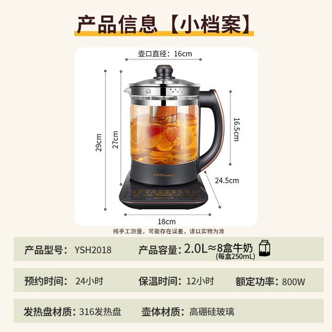 荣事达/Royalstar 养生壶2L大容量玻璃茶壶智能煮茶器壶全自动烧水壶【316不锈钢+滤网】YSH2018 24h智能预约 兑换价格 8300 里程 会员卡别 终身白金卡 白金卡 金卡 银卡 普通卡 儿童卡 服务 由 诚最电器精品店 发货并提供售后 颜色: 其他 购买数量: 件 库存件 配送地址: 立即购买 加入购物车 成功添加到购物车 关闭 购物车共有 种商品 总金额为: