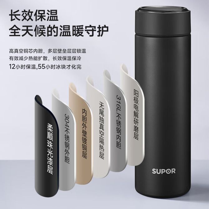 苏泊尔(SUPOR) 保温杯500ml大容量 316L不锈钢男女士学生上班族简约水杯 茶水分离便携保温杯 (此款为500mL保温杯科技白 详情共用)易清洗 耐腐蚀 无异味 长效保温 兑换价格 3000 里程 会员卡别 终身白金卡 白金卡 金卡 银卡 普通卡 儿童卡 商品已下架 1. 请联系卖家咨询 2. 逛逛广西桂雅文化传媒有限公司选择其他商品 组合销售 产品介绍 产品规格 售后服务 产品咨询 发现好货 爱奇屋aichiw思悦保温杯AI-D97 1500 里程 希乐(cille) 领先保温杯XB-22172女生316水杯儿童上学专用大容量杯子冬季男款学生水壶500ml 2400 里程 爱奇屋 保温杯随行口袋杯 高颜值清新小巧水杯子280ml AI-D158 1100 里程 德铂(Debo) 480ml托马斯弹跳盖304不锈钢保温杯DEP-719 1500 里程 德铂Debo保温杯304不锈钢内胆双层茶杯白色DEP-719 1400 里程
