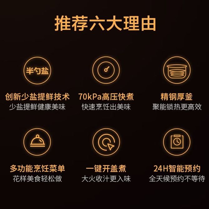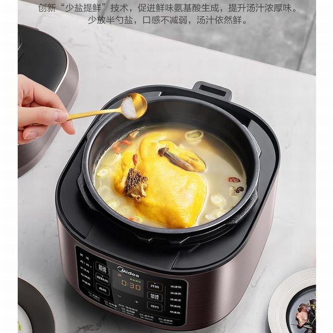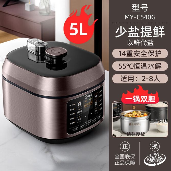 组合销售 产品介绍 产品规格 售后服务 产品咨询 发现好货 苏泊尔(SUPOR)电压力锅 6升大容量 智能触控 球釜双胆 开盖收汁 一键排压 SY-60YC8001Q 高压锅 16900 里程 苏泊尔(SUPOR) 5L电压力锅家用电高压锅双胆高压电饭锅煮饭智能预约 SY-50YC8186 11300 里程 美的/Midea 电压力锅 【一锅双胆】5L全自动家用智能预约 上蒸下煮 不粘双胆煲汤炖肉 YL50Q3-451 10900 里程 美的/Midea 电压力锅 【双胆】5升大容量电饭煲全自动智能饭锅多功能高压锅 24小时智能预约 MY-E523 10400 里程 九阳/Joyoung 电压力锅5L家用电饭锅压力煲电高压锅煮饭锅电饭锅电饭煲全自动智能预约 Y-50C31 11000 里程