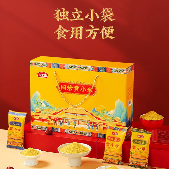 燕之坊 四珍黄小米礼盒1.92kg 鲜黄饱满4味特色小米浓香 赤峰沁县金乡米脂县黄小米礼盒装 送礼佳品 内配:四珍黄小米礼盒1.92kg;内配明细:沁县黄小米80gx6、赤峰金玉黄小米80gx6、米脂县黄小米80gx6、金乡县黄小米80gx6 兑换价格 3300 里程 会员卡别 终身白金卡 白金卡 金卡 银卡 普通卡 儿童卡 服务 由 广西桂人礼互联网科技有限公司 发货并提供售后 规格: 礼盒 购买数量: 件 库存件 配送地址: 立即购买 加入购物车 成功添加到购物车 关闭 购物车共有 种商品 总金额为: 组合销售 产品介绍 产品规格 售后服务 产品咨询 发现好货 金熊 泰国茉莉 香米 1kg 泰国原料进口 1300 里程 十月稻田当季新米辽河长粒香大米 5kg 东北大米 香米 粳米 十斤 2100 里程 源头说 五常有机稻花香新米 东北大米 2.5kg(双重防伪认证) 4200 里程 裕道府东北大米好味稻香米 5kg 2000 里程 十月稻田 长粒香大米2.5kg 东北大米5斤 东北香米 1300 里程