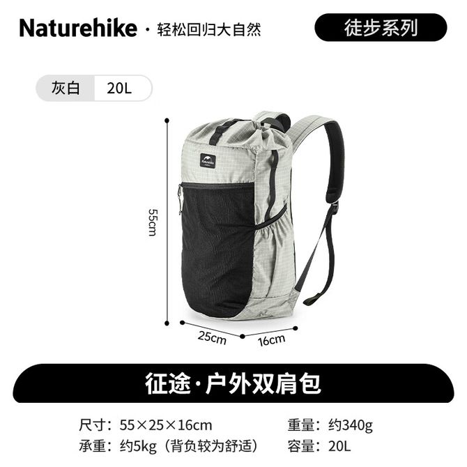 挪客(NatureHike) 征途超轻双肩背包男女户外徒步登山包轻量舒适旅行包大容量 灰白色-20L 征途超轻双肩背包男女户外徒步登山包轻量舒适旅行包大容量 灰白色-20L 兑换价格 7900 里程 会员卡别 终身白金卡 白金卡 金卡 银卡 普通卡 儿童卡 服务 由 威嘉宏户外馆 发货并提供售后 颜色: 灰色 购买数量: 件 库存件 配送地址: 立即购买 加入购物车 成功添加到购物车 关闭 购物车共有 种商品 总金额为: 组合销售 产品介绍 产品规格 售后服务 产品咨询 发现好货 匹克/PEAK 防泼水男女户外轻便旅行双肩运动登山背包10L YW41102 5400 里程 骆驼/Camel 户外双肩包男女徒步旅行运动登山包大容量轻便背包 3FI101C 【赠送登山杖1根】 13000 里程 TFO 北美系列户外登山包30L9202403F00 黑色 35L 17400 里程 TFO 登山户外背包 男女大容量轻便耐磨电脑仓 旅行骑行野营双肩包 蓝色 40L 9600 里程 驿客/EASTSKY 时尚户外通勤背包(黑色/灰色两色可选)EKB-8007 2200 里程