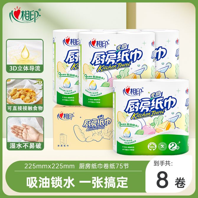 心相印 厨房用纸8大卷/4提吸油吸水厨房纸巾厨房卷纸食品级料理纸厨房专用纸 8大卷:整箱划算/9倍瞬吸水油一抹净 兑换价格 1400 里程 会员卡别 终身白金卡 白金卡 金卡 银卡 普通卡 儿童卡 服务 由 恒安集团旗舰店 发货并提供售后 包装数量: 箱 购买数量: 件 库存件 配送地址: 立即购买 加入购物车 成功添加到购物车 关闭 购物车共有 种商品 总金额为:
